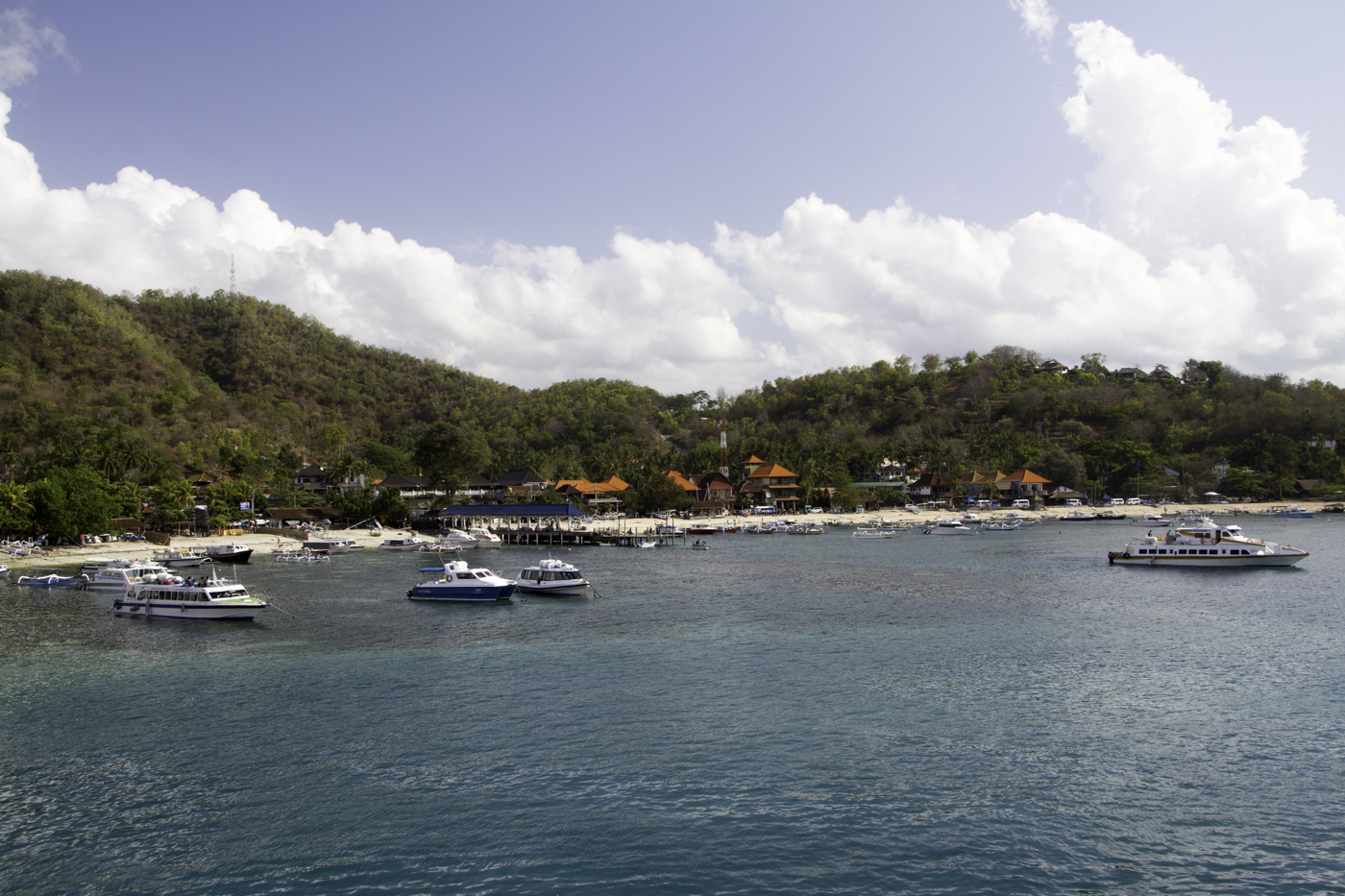 Vandaag een reisdag. We verlaten Bali en gaan naar Lombok. Na een korte busrit van een uur kwamen we aan in de haven van Padang Bai, waar we na een half uur al op de boot konden. We hadden gelukkig iemand gevonden die onze tassen naar boven wilde zeulen, want die zijn niet te tillen. Moeten we volgend jaar toch anders doen. Het zijn super koffers, alleen leeg zijn ze al 4 kilo, dus tja met wat spullen er in voor een maand zit je zo op de 20 kilo.